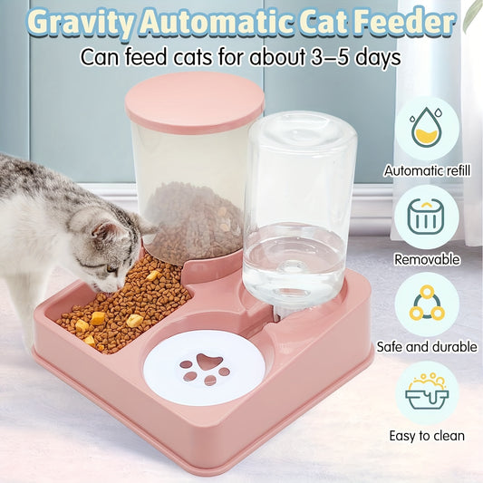 Automatic Cat Feeder Water Dispenser Set, 2 In 1 Tilted Automatic Pet Food And Water Feeder Gravity Food Feeder And Waterer For Indoor Cats