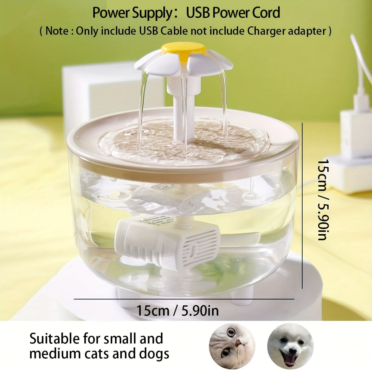 1.5L Large Capacity Transparent Pet Water Fountain - Automatic Circulation, USB Powered, Whisper Quiet, Easy to Clean, and BPA-Free - Perfect for Indoor Cats and Small Pets