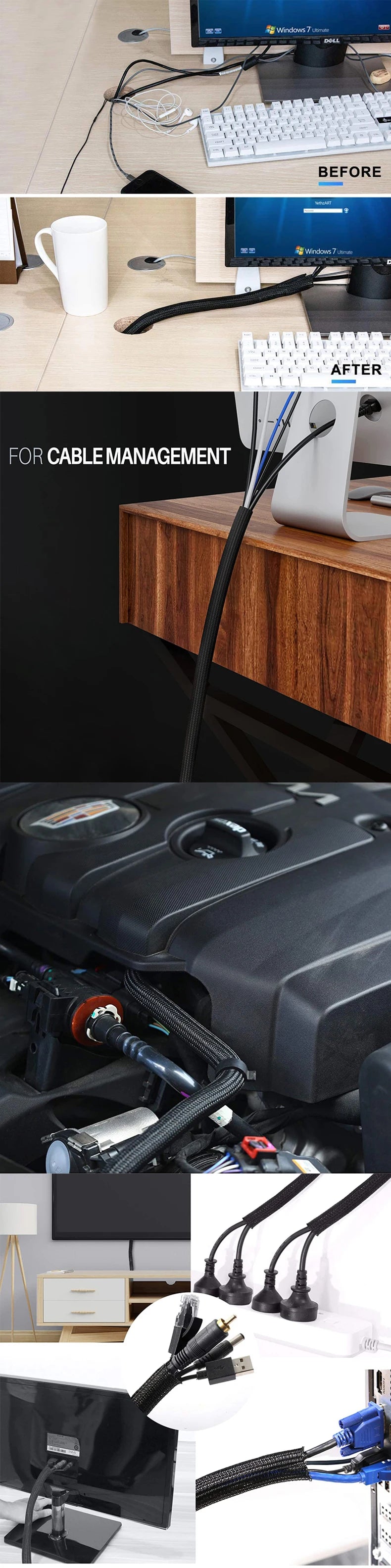 10M Black Insulated Braid Sleeving 4 - 30mm Tight PET Wire Cable Gland Protection Cable Sleeve Flame-Retardant Nylon Tube