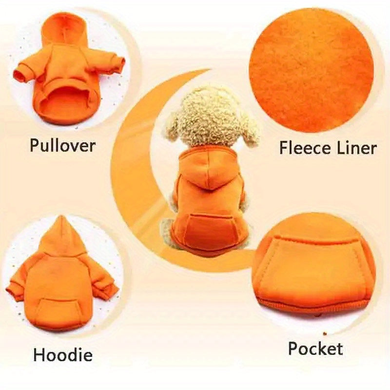 1pc Cozy Pet Hoodie Sweatshirt - All-Season Pullover Dog Jacket with Fleece Lining, Pocket, and Hood for Small to Medium Breeds - Woven Polyester Doggy Costume for Chihuahuas, French Bulldogs & More