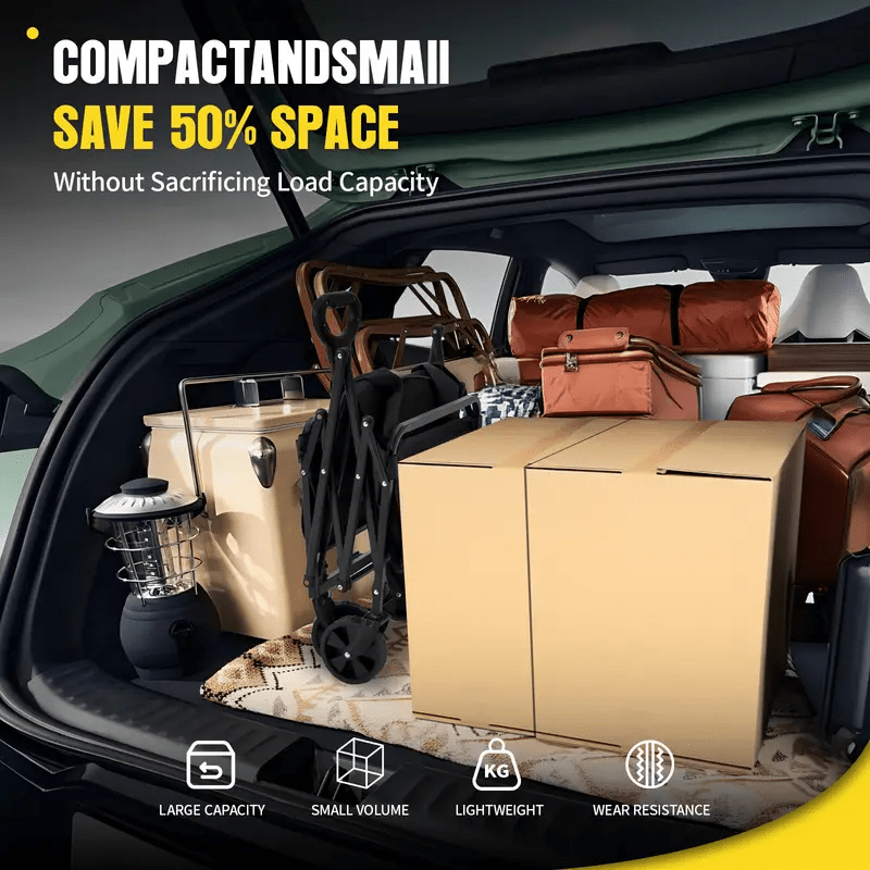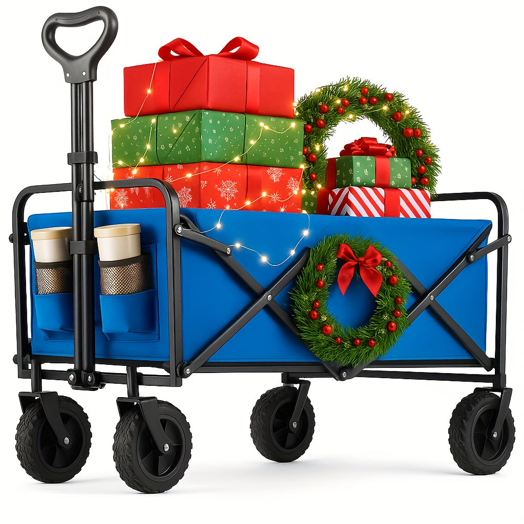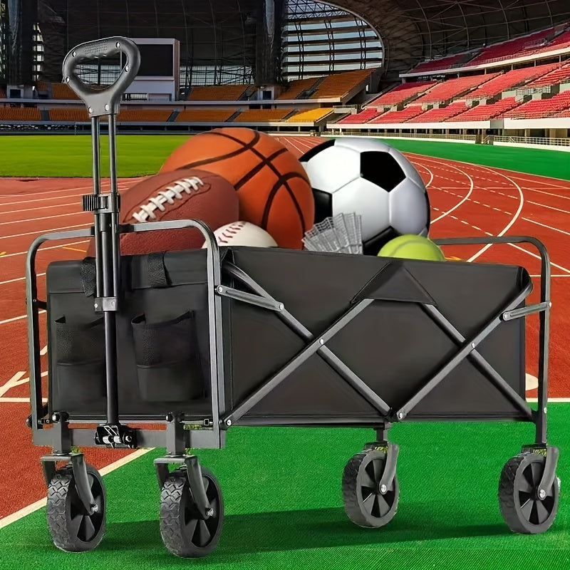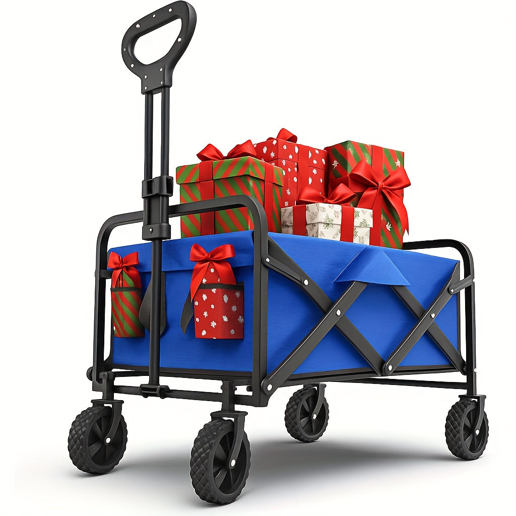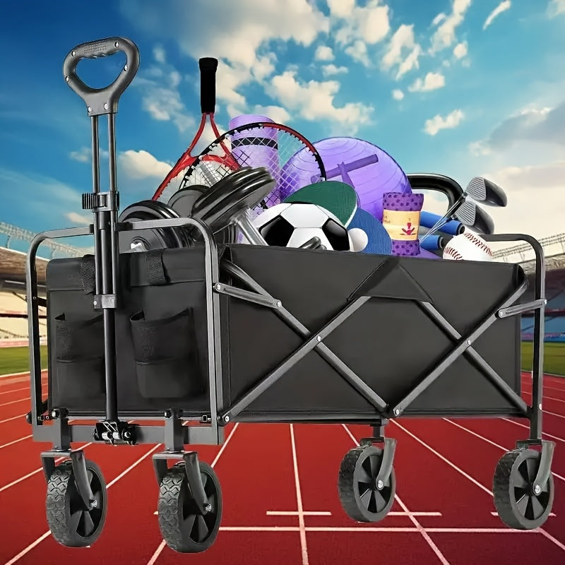 1pc Heavy-Duty Collapsible Foldable Utility Wagon Cart with All-Terrain Wheels, 30" Large Capacity RV/Garden/Beach Cart, 450 Capacity (Weight-Limit Equivalent), Lightweight Metal Frame for Camping, Groceries, Furniture & Pets