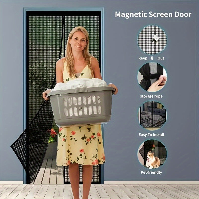 1pc Heavy-Duty Magnetic Screen Door With Full Frame Hook & Loop, Durable Polyester Mesh Curtain For Fresh Air Circulation, Easy Entry For Pets, Kid Friendly, Bug & Insect Proof, Fits Doors Up To 38x82 Inches