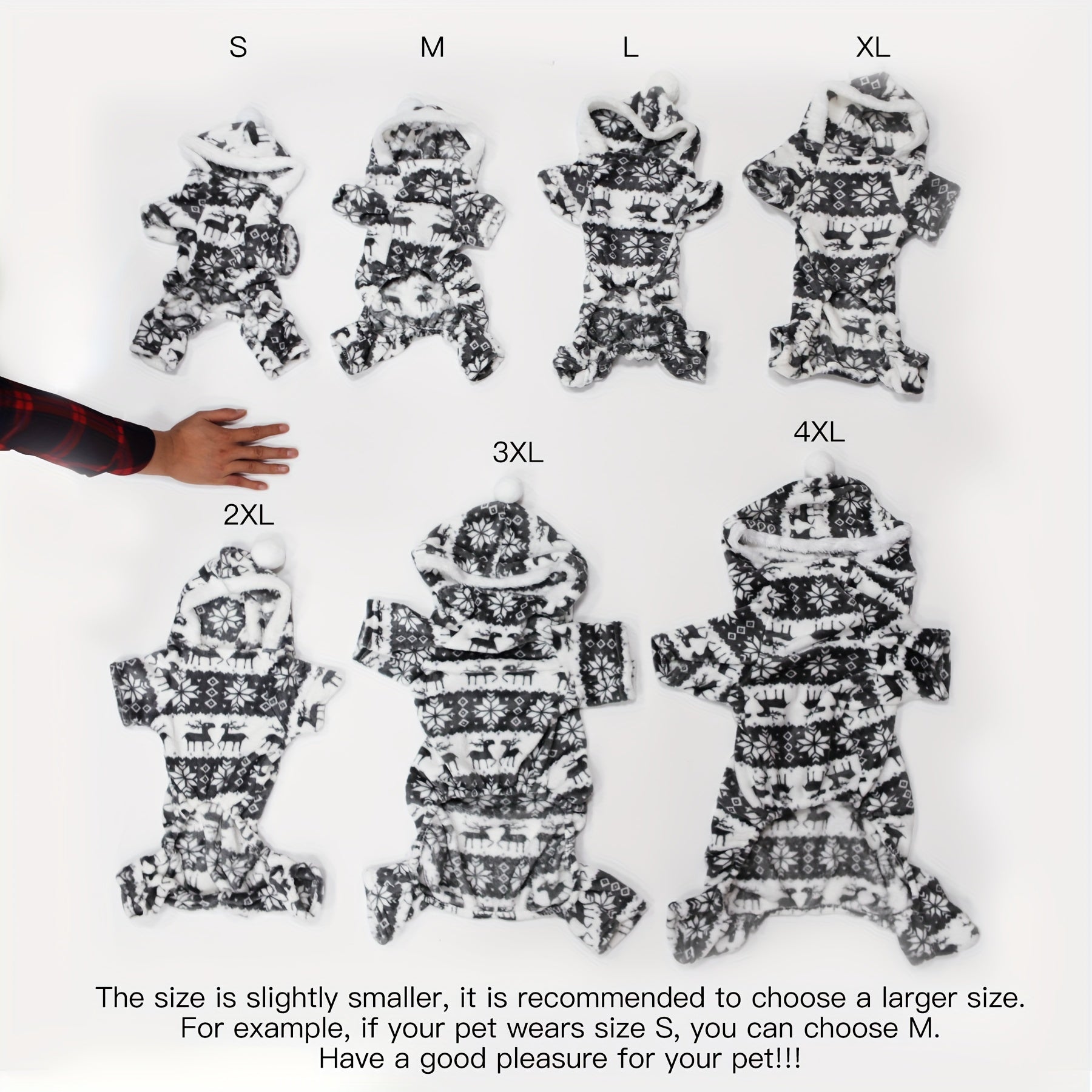1pc Pet Christmas Reindeer Graphic Pajamas Hooded Jumpsuit For Puppy, Toy And Small Dog for stocking stuffers
