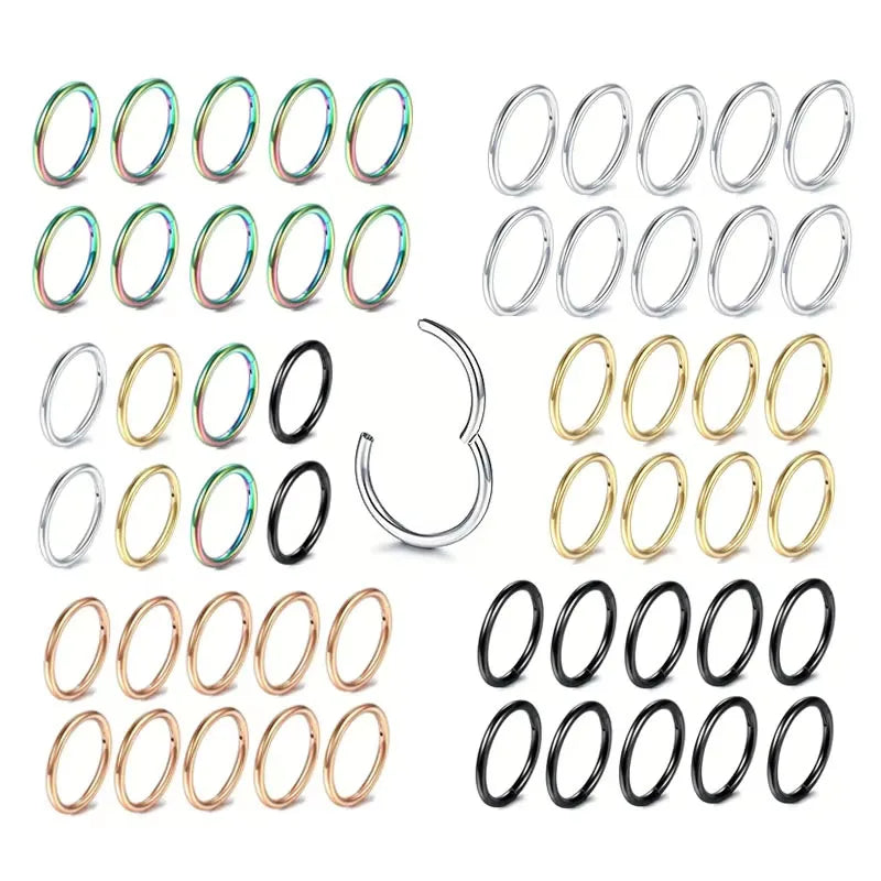 5/10Pcs 16G Nose Ring Hoop Stainless Steel Hinged Nose Rings Septum Clicker Tragus Helix Cartilage Daith Rook Earring Piercing