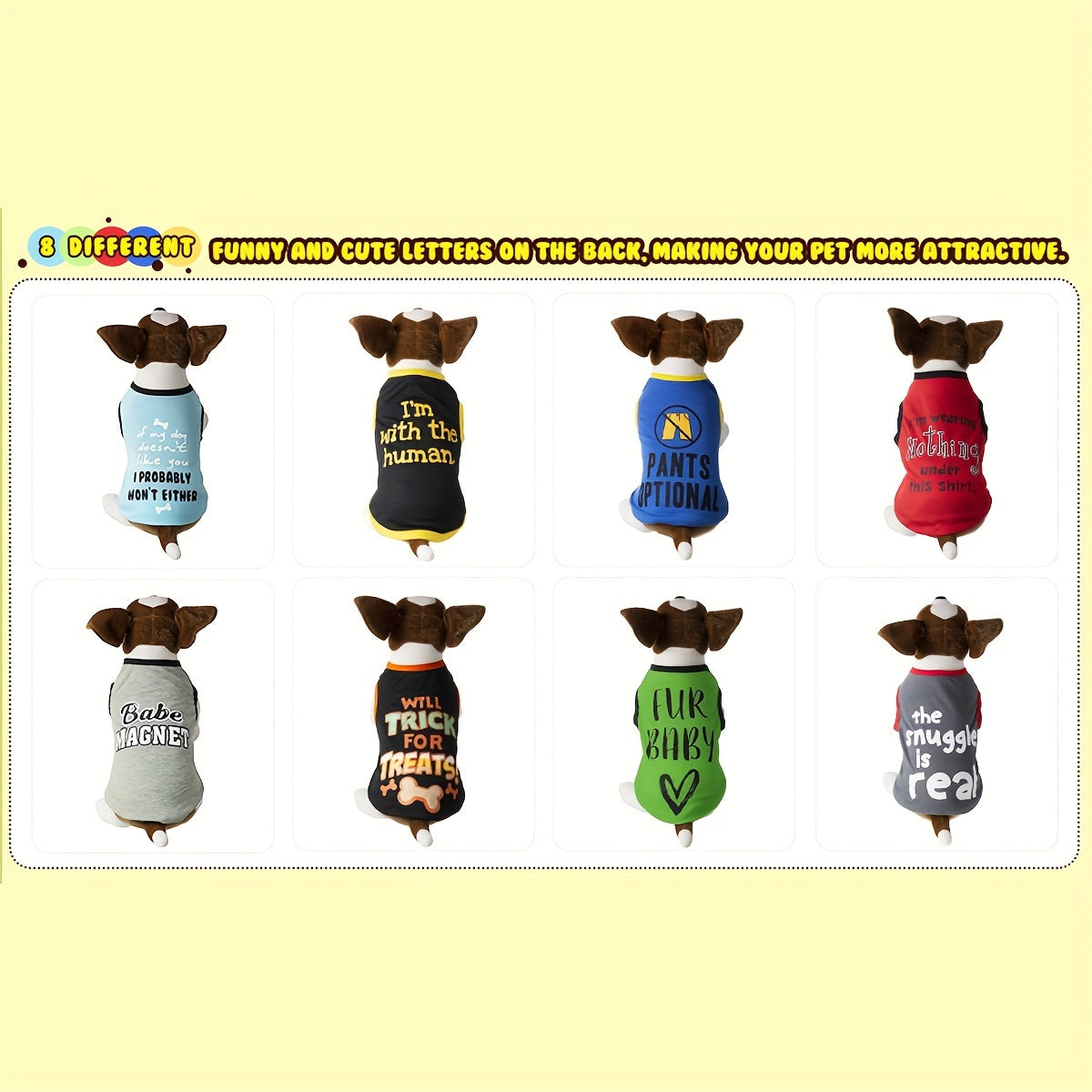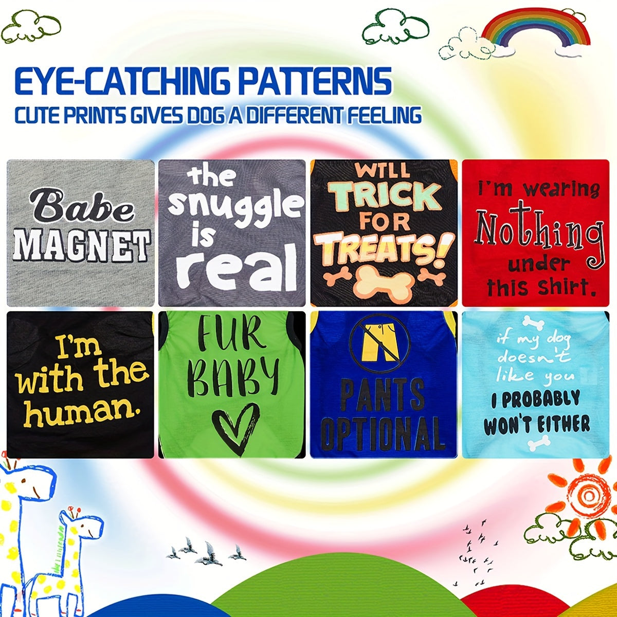 8pcs PAIAITE Dog Shirts - Funny Pet Outfits with "The Snuggles Are Real", "I'm Wearing Treats Under This Shirt", "Fur Friend" - Soft Breathable Dog Clothes for Small Dogs & Cats - Easy Slip-On Summer Apparel in Grey/Black/Red