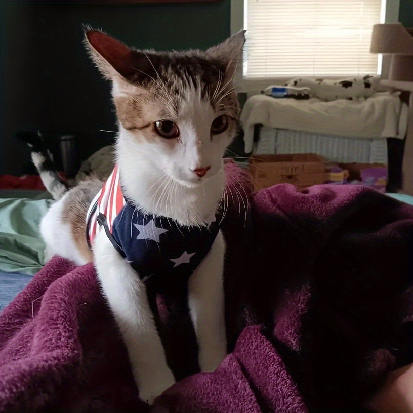 Stars & Stripes Pet Vest - Cartoon Printed, Summer Themed, Breathable, Comfortable Dog Shirt for Small to Medium Dogs - Independence Day Celebration Outfit